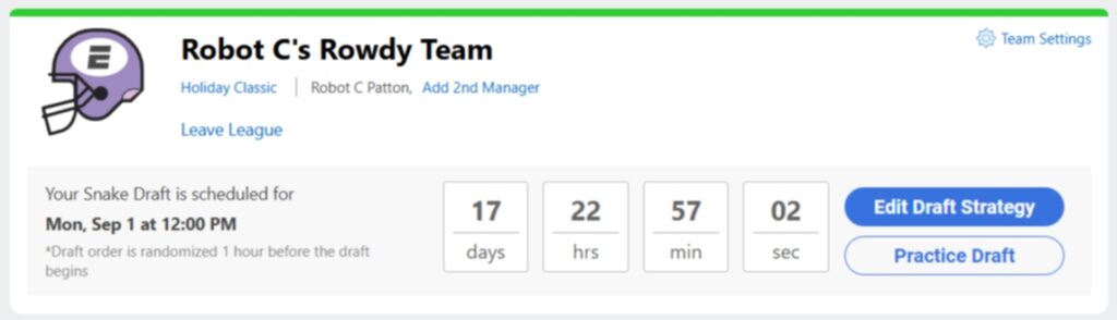 My question for you: is it difficult to plan since you do not know what pick you have until one hour before the draft? It is possible to set the draft order earlier. Let me know if you prefer that, using the comment section below.