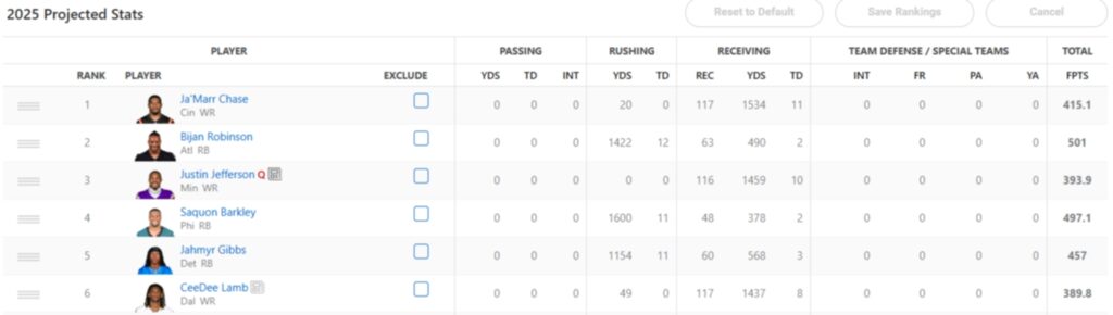 - You have no idea how your opponents will set their pre-draft rankings, but it is safe-ish to assume they will not stray too far from the default.